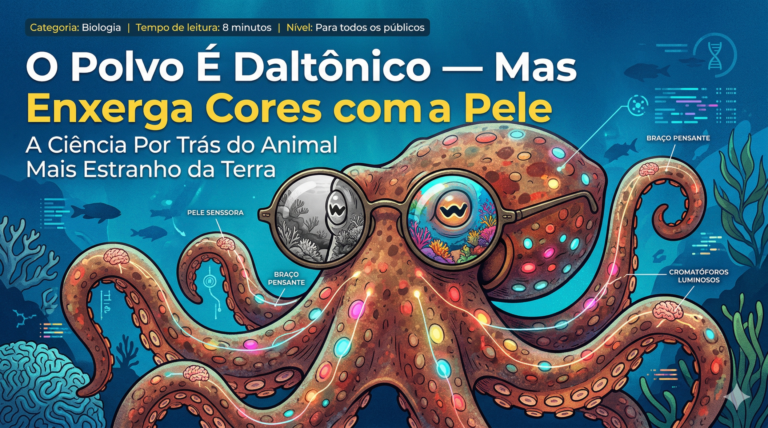 • Daltônico, Mas Genial: O Mistério de Como o Polvo Percebe Cores