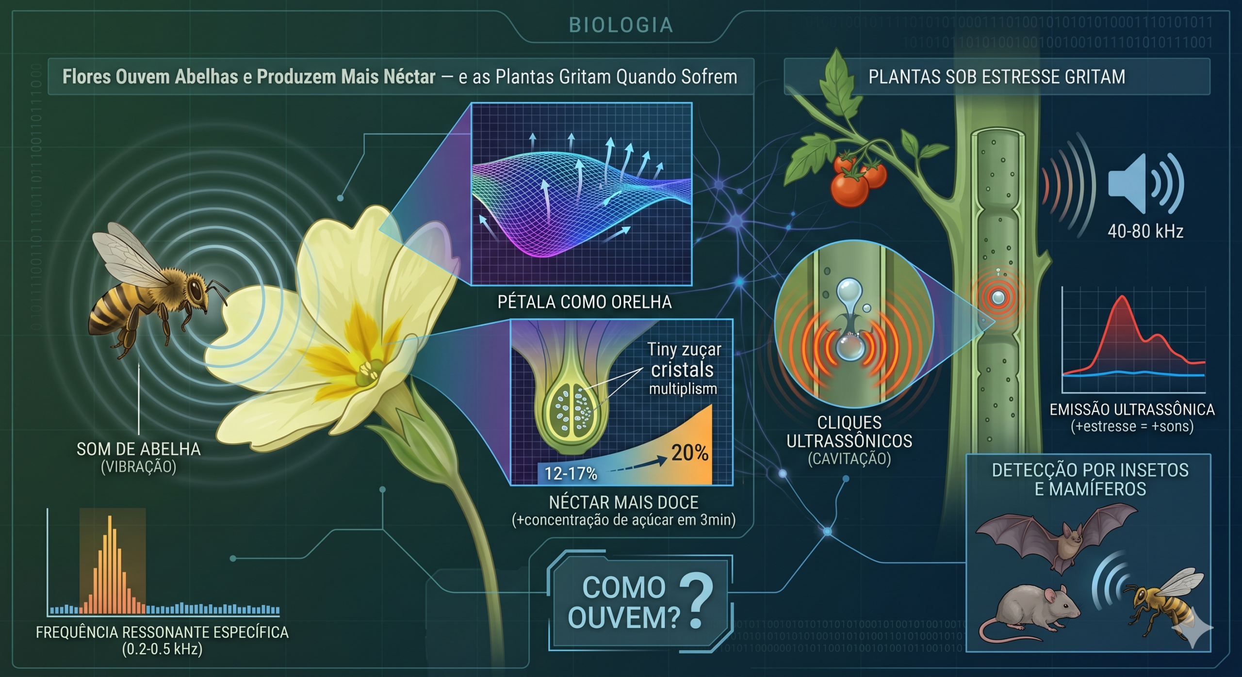 Flores da prímula-da-praia ouvem o zumbido de abelhas e produzem néctar mais doce em 3 minutos. E plantas de tomate…