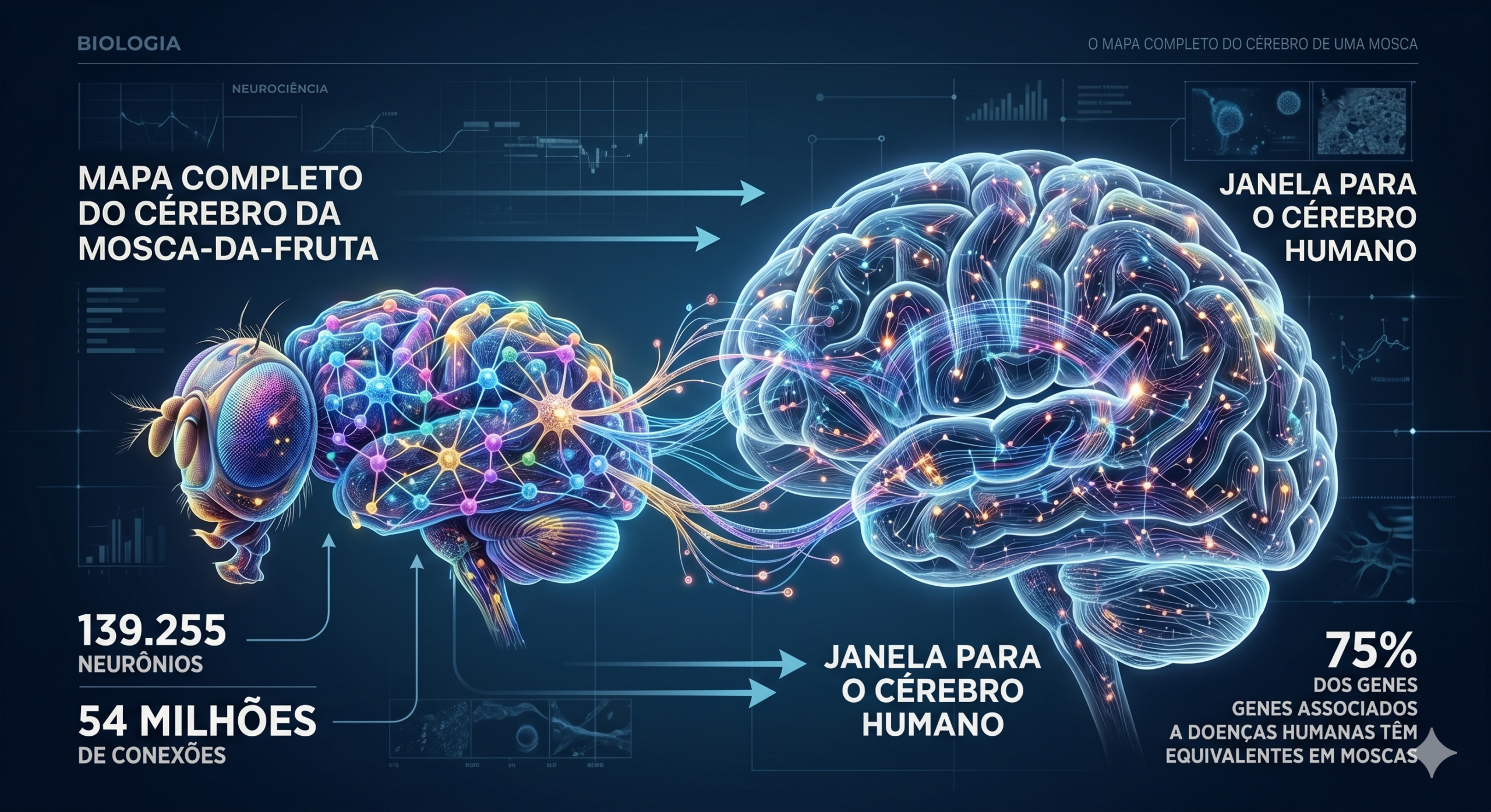 Em 2024, cientistas mapearam todos os 139.255 neurônios do cérebro de uma mosca adulta — o maior conectoma já produzido.…